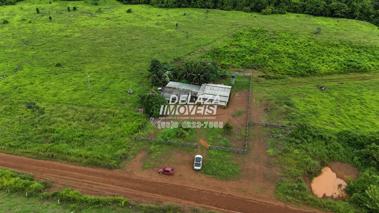 Benfeitorias: Casa em alvenaria, casa em madeira, curral, cerca em toda propriedade, com água boa.